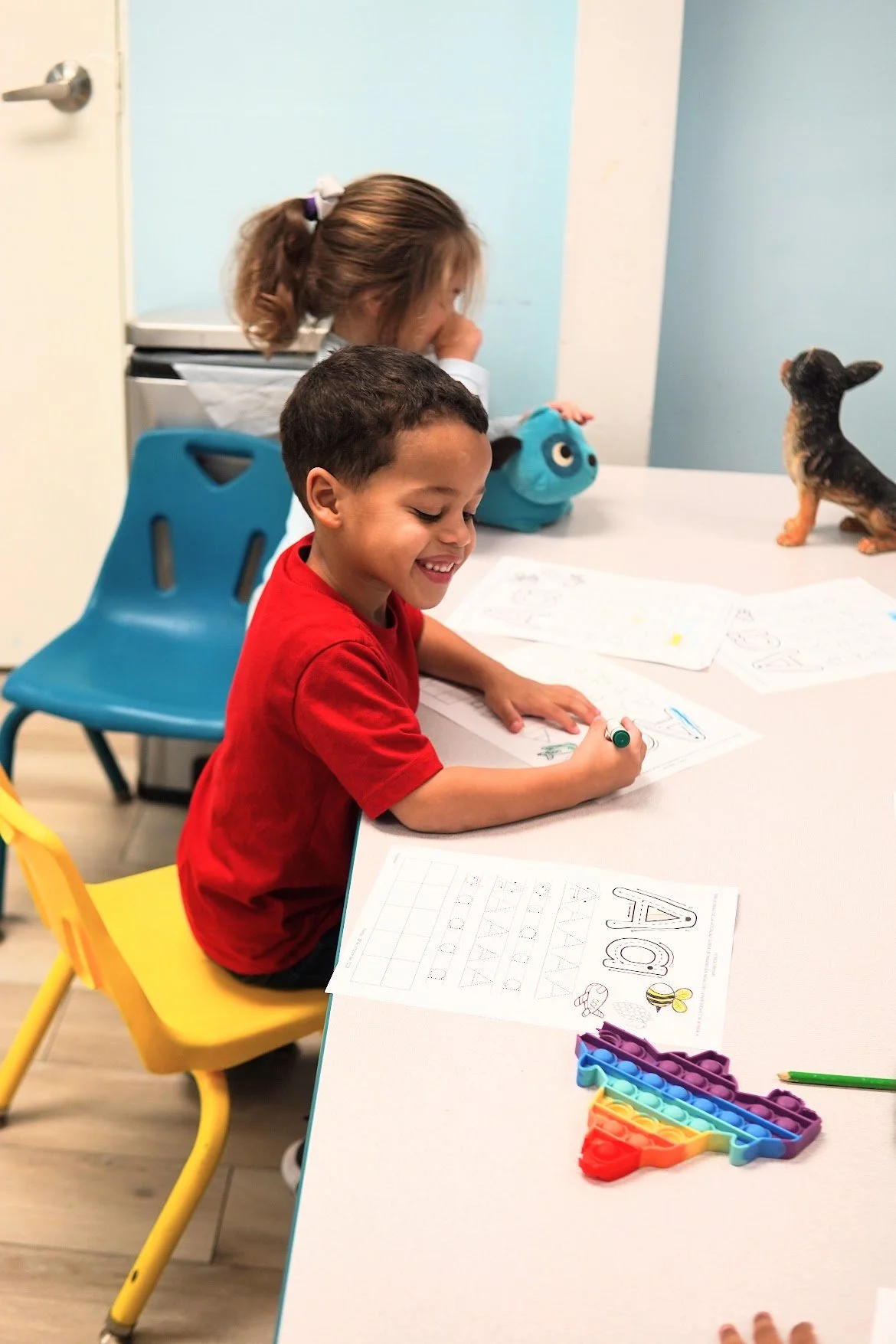 Our Preschool curriculum is specifically developed for our three- to five-year-old little learners and provides a solid foundation for literacy, foundational language, numeracy, writing, and social-emotional skills through the introduction of additional proprietary programs.